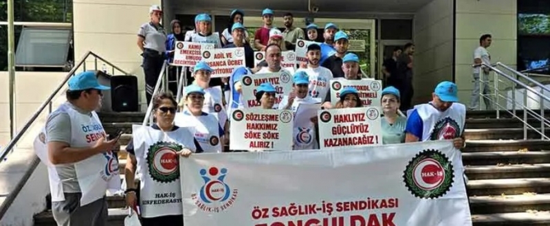 Hak-İş Konfederasyonu’na bağlı Öz Sağlık İş Sendikası, Zonguldak Ağız ve Diş Sağlığı Merkezi önünde basın açıklaması ve oturma eylemi düzenledi.