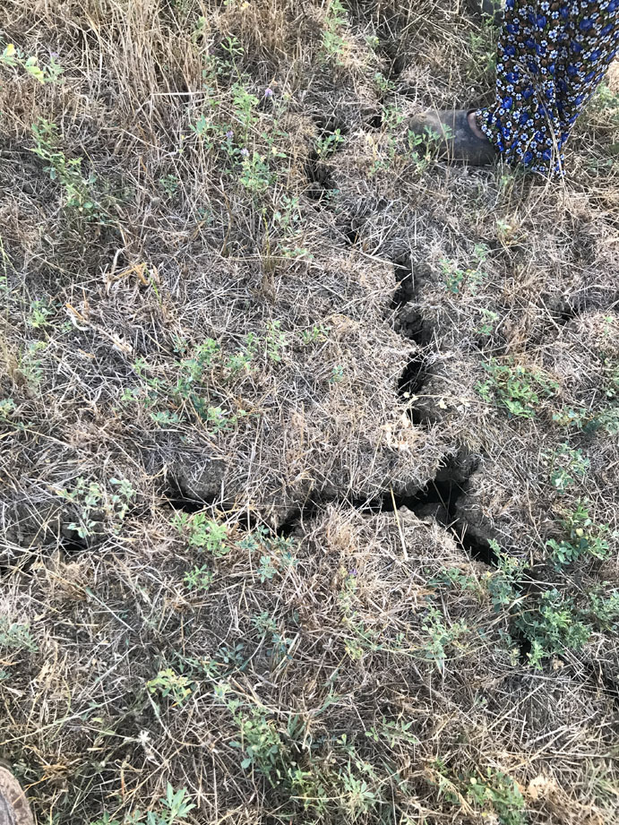 Bölgede uzun süredir yağmur yağmaması nedeniyle toprakta çatlaklar oluştu. Büyük ölçüde etkisini gösteren kuraklık, hem görsel olarak tedirginlik yaratıyor hem de tarım için tehdit oluşturuyor. Bakırcılar Köyünde yaşayan Güler Gedik, "Heryer kurudu, bağ, bahçe, fidanlarımız kurudu. Kuraklık nedeniyle tarlalarımızda büyük yarıklar oluştu. Hayvanlarımız neredeyse ot bulamaz hale geldi. Allah yardımcımız olsun." diye konuştu.