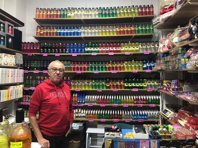 Eski Pazar alanında faaliyet gösteren işyerini Cemil Ulupınar Sokağı’na taşıyan Cimit Şenol, Devrek’e özgü Mancar Kolonyağılarının yanı sıra, envai çeşit kolonyağı, kına, esans, tütün vb. ürünlerin satışını yapıyor.