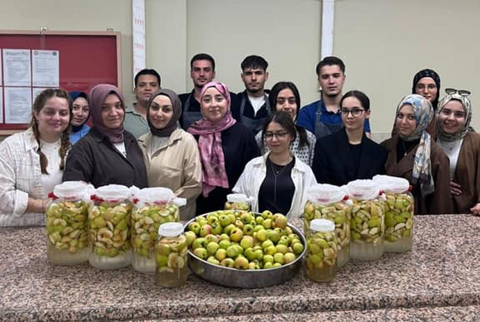 Devrek MYO Aşçılık Programı öğrencileri, yerleşke bahçesinden topladıkları doğal ürünleri kullanarak probiyotik sirke üretiminde uygulamalı deneyim kazandı.