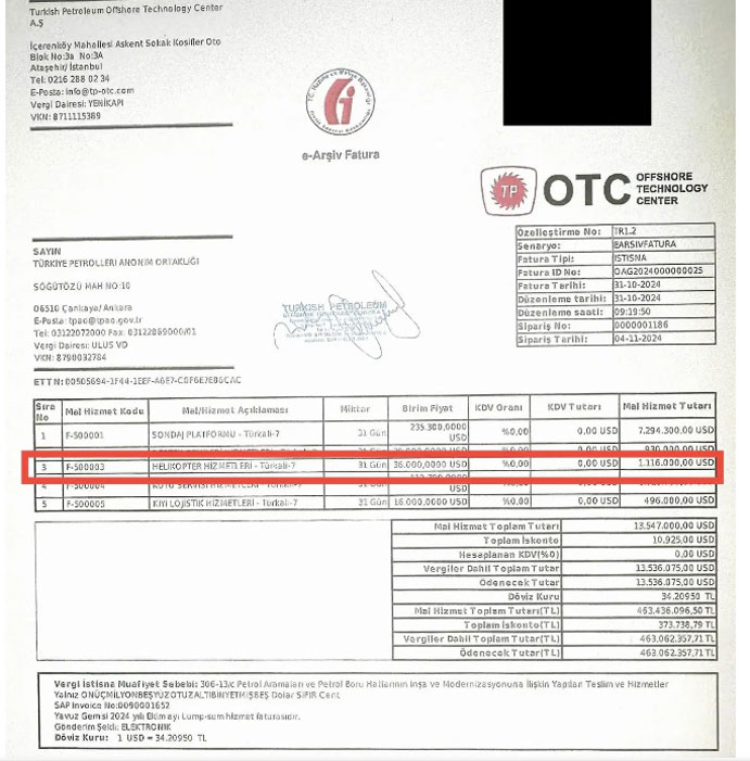 Sondaj gemilerine alınan helikopter hizmetleri için, Katar ortaklı bir helikopter kiralama şirketine yaptığı devasa tutardaki ödemeleri tespit ettik.