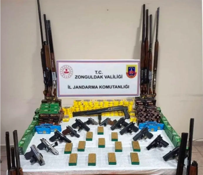 Zonguldak İl Jandarma Komutanlığınca, silah ve mühimmat kaçakçılığına yönelik Çaycuma ilçesinde 7 şüpheli şahsa ait 9 ayrı adreste yapılan aramada;