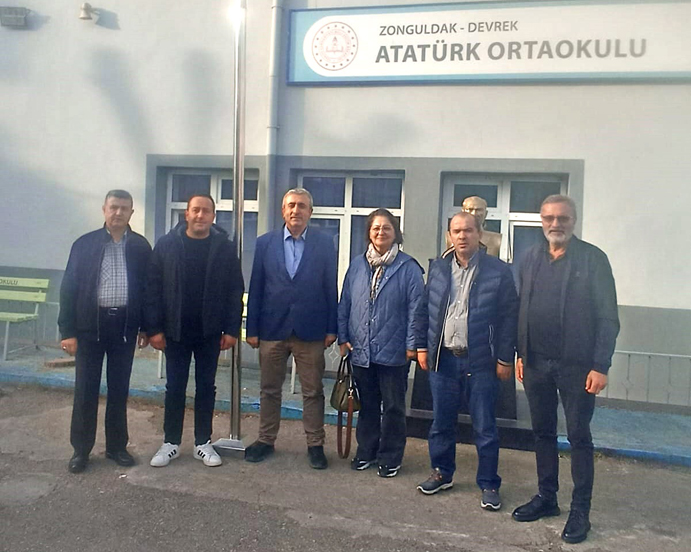 Devrek şehir merkezinde mahalle muhtarlıkları yapan, Necla Esen Ak, Basri Keklik, Kemal Uzun, Vedat Çıtlık, Niyazi Yeşilyaprak Devrek Atatürk Ortaokulu’nu ziyaret ederek Okul Müdürü Hayati Masalcı ile görüştü.