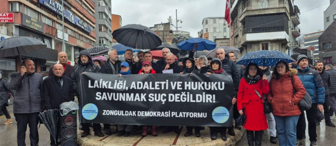 Zonguldak Demokrasi Platformu tarafından aralarında gazeteci, yazar, sanatçı ve akademisyenlerin bulunduğu 168 kişiye açılan davayla ilgili "Laikliği birlikte savunuyoruz" başlıklı basın açıklaması yapıldı.