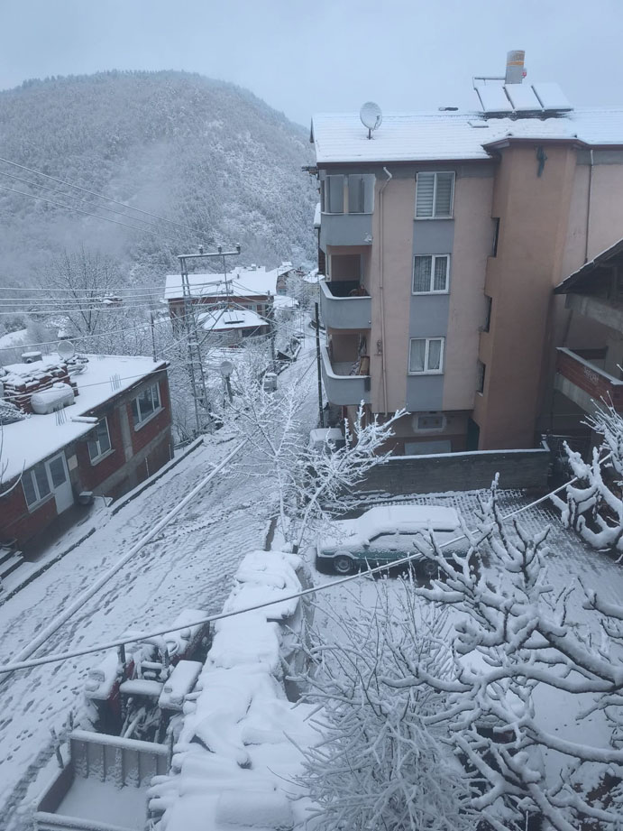 Dün geceden beri devam eden kar yağışı köyü beyaza büründürürken, ulaşımda da aksaklıklar yaşandığı kaydedildi.