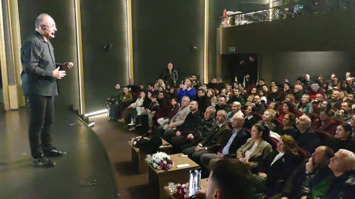 Sunay Akın’ın kendine özgü anlatımıyla tarih, edebiyat ve kültür dolu bir yolculuğa çıkan katılımcılar, “Mahya Işıkları” söyleşisinde hem düşündü hem de keyifli anlar yaşadı. Anlatılarıyla salonda zaman zaman duygusal, zaman zaman neşeli anlar yaşandı.