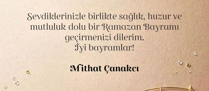 Çanakçı, mesajında, "Sevdiklerinizle birlikte sağlık, huzur ve mutluluk dolubir Ramazan Bayramı geçirmenizi dilerim. İyi Bayramlar." ifadelerine yer verdi.
