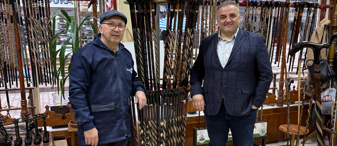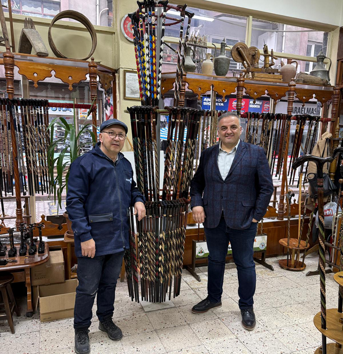 Devrek bastonunu hem ulusal hem de dünya çapında tanıtan ve gelişmesinde büyük emeği olan Baston Ustası Tansel Işık’ı işyerinde ziyaret eden Başkan Ziya Öncan, “Devrek’in bu önemli ata mesleğini sürdürdüğü için Tansel Ustamıza teşekkür ediyorum” dedi.