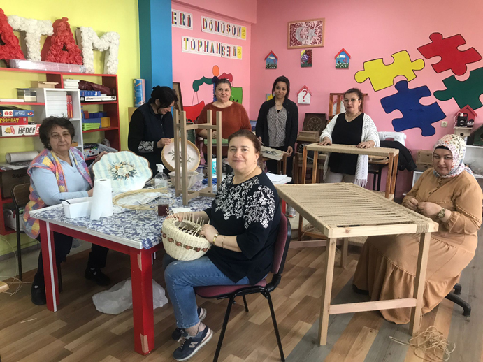 Kurs kapsamında yapılan çalışmalar arasında rattan sepetler, aynalar, lambalar, büyük ölçekli duvar saatleri ve geri dönüşüm boyamaları yer alıyor. Katılımcılar, doğal malzemelerle estetik ürünler ortaya çıkararak hem el becerilerini geliştiriyor hem de sürdürülebilir üretime katkı sağlıyor.