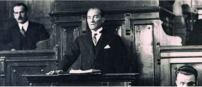 “Bütün cihan bilmelidir ki artık bu devletin ve bu milletin başında hiçbir kuvvet yoktur, hiçbir makam yoktur. Yalnız bir kuvvet vardır. O da millî egemenliktir. Yalnız bir makam vardır. O da milletin kalbi, vicdanı ve mevcudiyetidir.”