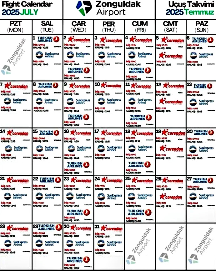 Zonguldak Havalimanı 2026 Mayıs ayı uçuş planı açıklandı.