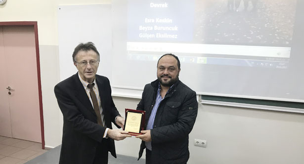 Dekan Prof. Dr. Şadi Şen, İbrahim Tığ’a katkıları nedeniyle bir teşekkür plaketi verdi.