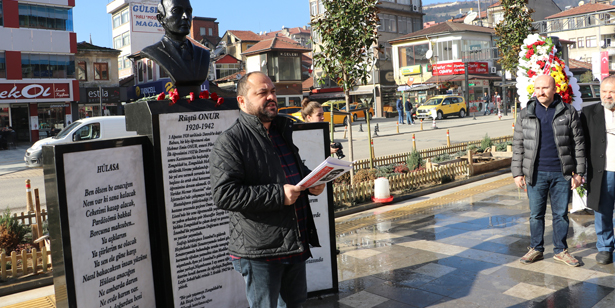 Rüştü Onur'un büstüne çelenk sunumuyla başlayan törene saygı duruşuyla devam edildi. Törende konuşan şair-yazar İbrahim Tığ, Devrekli şair Rüştü Onur'u vefatının 75. yılında saygıyla andıklarını söyledi.