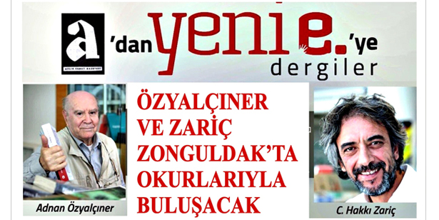 Yazar Adnan Özyalçıner ve C. Hakkı Zariç, “a’dan yeni e.’ye dergiler” söyleşi ile bu hafta sonu Zonguldak’ta okurlarla buluşacak.