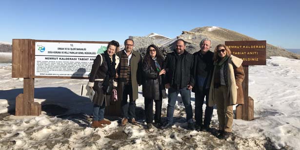 Nemrut Gölü’nün dışarıya akıntısı olmadığı gibi tatlı bir su yapısına sahipmiş. Biz, gölün üzerinin karla kaplı olduğuna tanık oluyoruz. Sıcak ve soğuk göllerin bir arada bulunduğunu öğrendiğimizde de şaşırıyoruz. Gölde yaz aylarında konserler, yüzme yarışları, yelken gösterileri gibi etkinlikler yapılırmış. Bizler de muhteşem manzaralara tanık olduk bu gezimizde. Nemrut Dağı’nın güney yamaçlarında teleferik ve konaklama merkezlerini de gördük. Van Gölü manzarasını izleyerek kayak yapmak isteyenler bu keyfi mutlaka yaşamalılar.