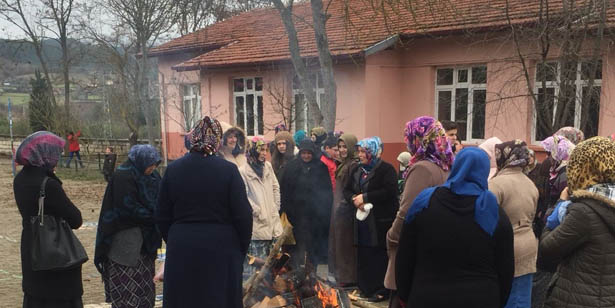 Yazıcık okulu önünde toplanan veliler, okullarında herhangi bir arıza olmadığını, çocuklarını da Özbağı okuluna göndermeyeceklerini belirterek idarecileri protesto ediyorlar.