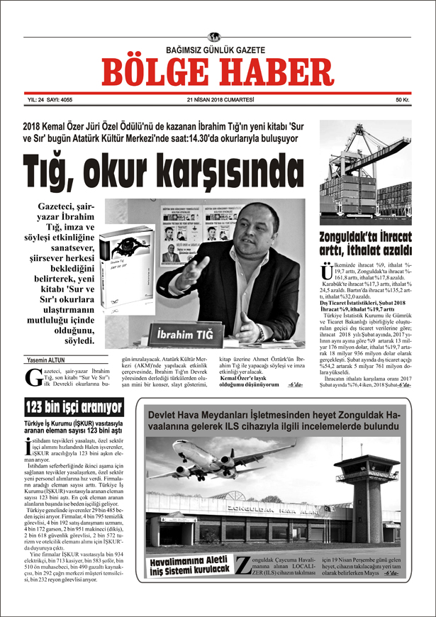 21 NİSAN 2018 BÖLGE HABER GAZETESİ SABAH BAYİLERDE...
