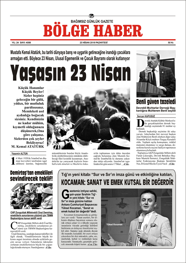 23 NİSAN 2018 BÖLGE HABER GAZETESİ SABAH BAYİLERDE...