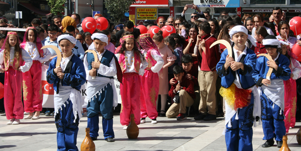 Cumhuiryet Alanı’ndaki kutlamalar günün anlam ve önemini belirten konuşmalardan sonra şiir, resim ve kompozisyon dallarında dereceye giren öğrencilere protokol tarafından çeşitli hediyeler verildi. 23 Nisan Ulusal Egemenlik ve Çocuk Bayramı dolayısıyla öğrenciler tarafından çeşitli gösteriler yapıldı. Birbirinden renkli görüntülerin yaşandığı kutlama programında özellikle anaokulu öğrencilerinin yaptığı gösteriler büyük beğeni alırken, gösteriler sırasında duygu dolu anlar da yaşandı.