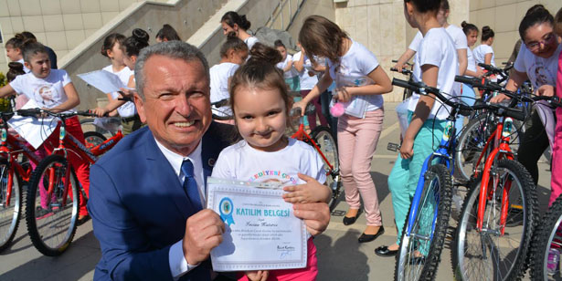 Başkan Kantarcı, aynı törende, geçtiğimiz 6 Nisan’da, Cumhuriyet Meydanı’nda, gazeteci Atilla Öksüz’le yaptığı canlı yayın sırasında, 4 öğrenciye verdiği bisiklet sözünü de yerine getirdi. Öğrenciler Rabia Gencer, Elif Gencer, Nur Banu Bozacı ve Zeynep Bozacı bisikletlerini teslim aldıktan sonra, diğer arkadaşlarıyla birlikte, sevinç içinde bir bisiklet turu yaptı. Toplam 40 bisikletin dağıtıldığı törende, çocuğu bisiklet sahibi olan aileler de büyük mutluluk yaşadı.