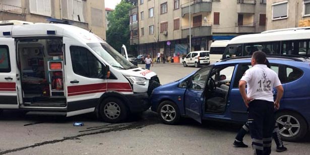 Zonguldak’ın Devrek ilçesinde, ambulans ile otomobil kafa kafaya çarpıştı. Kazada, ölen ya da yaralanan olmadı. Kaza, bugün saat 15.00 sıralarında ilçeye bağlı İsmetpaşa Mahallesi Akmercan önünde meydana geldi. Sanayi mevkiine seyir halinde olan otomobille, şehir merkezine seyir halinde olan ambulans, kavşakta kafa kafaya çarpıştı. Ölen ya da yaralanan olmadığı kazada, iki tarafta da maddi hasar meydana geldi.