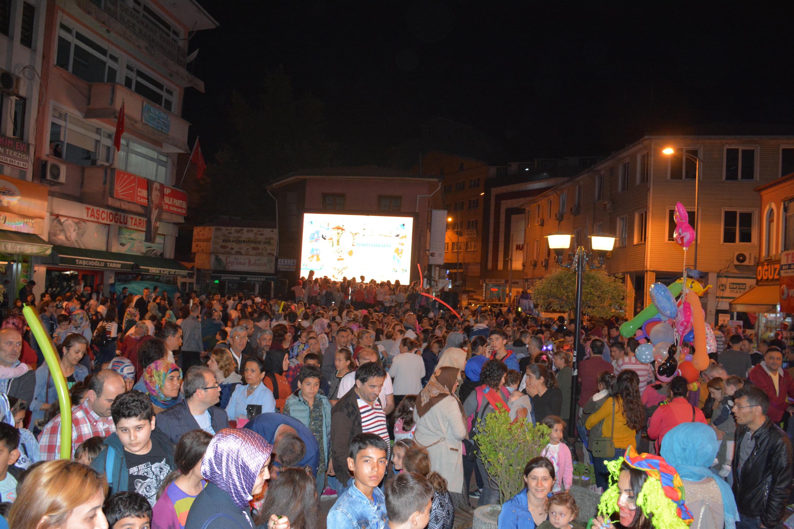Çaycuma Belediyesi tarafından ramazan ayı nedeniyle düzenlenen geleneksel ramazan eğlenceleri, ilk gününde yoğun ilgi gördü. Cumhuriyet Meydanı’nda iftar yemeğinin ardından başlayan etkinliklerde en çok eğlenen çocuklar oldu. Çocuklar meydana kurulan sahnede müzik eşliğinde oyunlar oynayarak doyasıya eğlendi. Gönüllerince eğlenen çocukların mutlulukları gözlerinden okundu. Hacivat-Karagöz ve palyaço gösterileriyle hoşça vakit geçiren yaklaşık bin kişinin kalabalık pamuk şekeri, balon, Osmanlı macunu gibi çeşitli ikramlardan da faydalandı. Çaycuma Belediye Başkanı Bülent Kantarcı’da şenliğe katılarak özellikle çocuklara pamuk şekeri ikram etti.