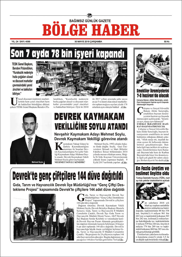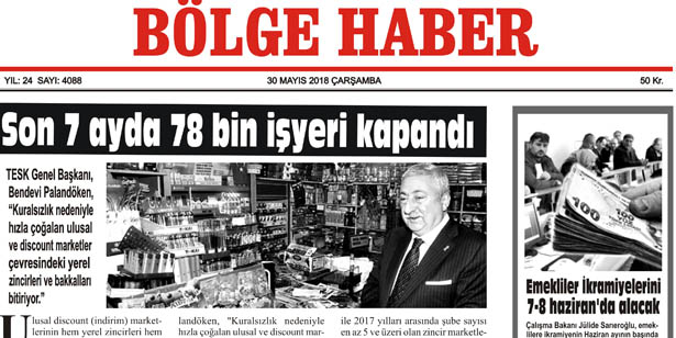 30 MAYIS 2018 ÇARŞAMBA BÖLGE HABER GAZETESİ SABAH BAYİLERDE...