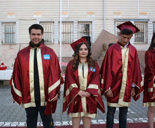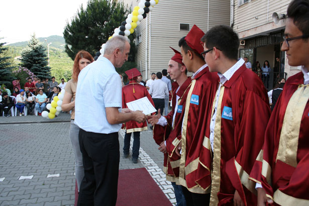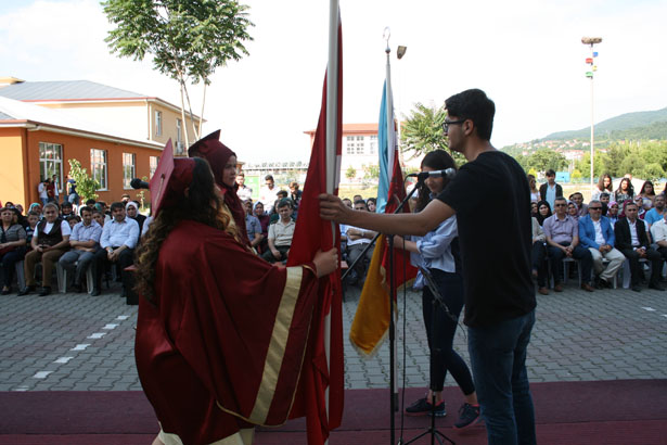 Teşekkür ve onur plaketlerinin dağıtılmasının ardından okulun Özel Eğitim sınıfından mezun olan 3 öğrenci ve mezun olan diğer öğrencilere diplomaları dağıtıldı. Daha sonra okulun Anadolu Meslek Programı ve Anadolu Teknik Programı birincileri Taner Çakır ve Buse Bostancı tarafından bayrak devir teslim töreni, mezuniyet kütüğüne ismini çakması gerçekleştirildi. Devir teslim ve isim çakılmasından sonra öğrenciler, müzik eşliğinde keplerini fırlatarak mezuniyetlerini coşkuyla kutladılar.