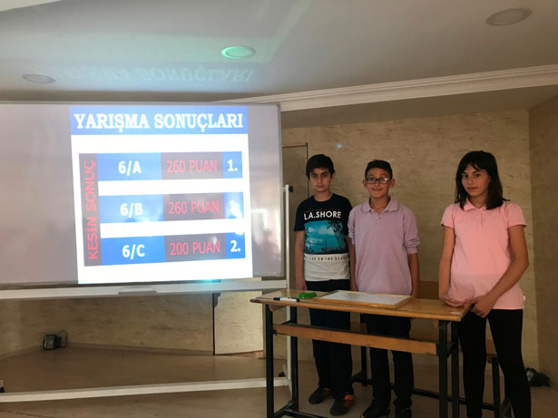 Uzun bir eğitim eğitim-öğretim yılının ardından karnelerini alan öğrencilerin heyecan ve sevinçleri okulun her yerini sardı. Bugün karne alan öğrenciler hem heyecanlıydı hem de iki kat sevinç yaşıyordu. Eğitim- öğretim yılı sona ermeden okulda eğitim gören 6. Sınıflar arasında bilgi yarışması düzenlendi. Yarışmada öğrencilere 6 temel dersten toplamda 24 soru soruldu. Yarışmada iki sınıf arasında eşitlik bozulmayınca altın soru uygulaması yapıldı ondada eşitlik bozulmayınca yarışma sonunda 6/B ve 6/A sınıfları birinici, 6/C sınıfı ise ikinci ilan edildi.