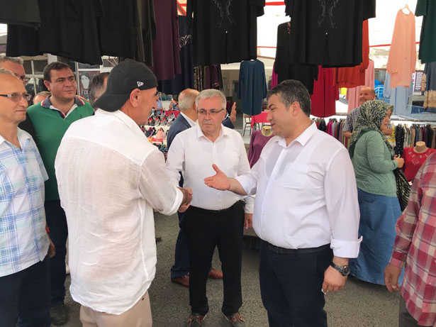Çaydeğirmeni’nde Pazar esnafını gezen Başolğu esnafı ve pazara gelen halkla sohbet etti, onların isteklerini, sorunlarını dinledi, seçim için onlardan destek istedi. Çaydeğirmeni gezisinin ardından rotasını üçüncü kez Devrek’e çeviren Başoğlu Devrek Sanayi Sitesi esnafını ziyaret etti. Sanayi esnafını dinleyen ve onlarla şuan ki iş durumları, piyasa durumu ile ilgili sohbet etti. Sanayi esnafından önümüzdeki günlerde yapılacak seçim için destek istemeyi de unutmadı.