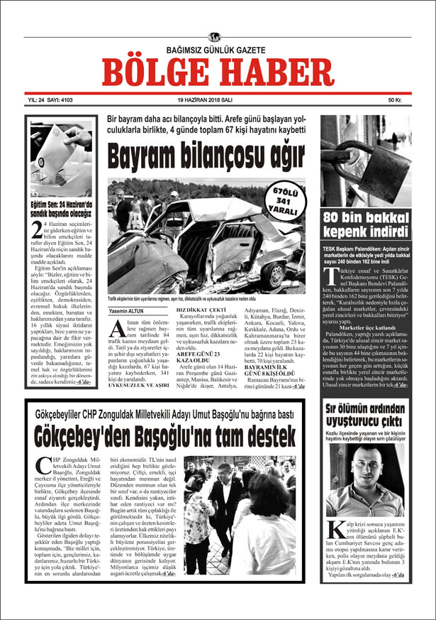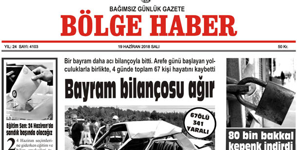 19 HAZİRAN SALI 2018 BÖLGE HABER GAZETESİ... SABAH BAYİLERDE....
