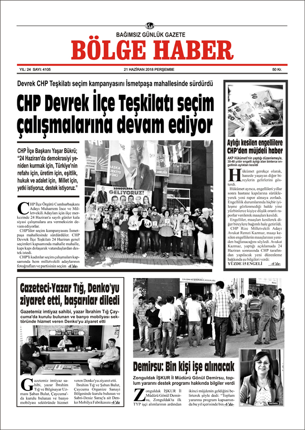 21 HAZİRAN PERŞEMBE 2018 BÖLGE HABER GAZETESİ... SABAH BAYİLERDE....