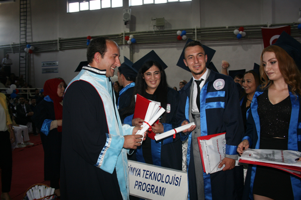 Konuşmaların ardından yüksekokulu ve programlarını derece ile bitiren öğrencilere ödülleri protokol tarafından verildi. Tüm öğrencilere diplomalarının verilmesinin ardından mezunlar yemin etti. Öğrenciler müzik eşliğinde keplerini fırlatarak mezuniyetlerini coşkuyla kutladılar.