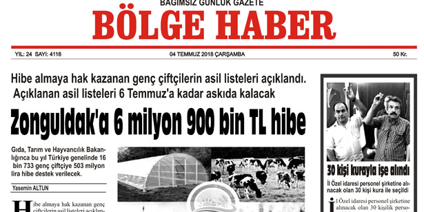 04 TEMMUZ ÇARŞAMBA 2018 BÖLGE HABER GAZETESİ... SABAH BAYİLERDE....