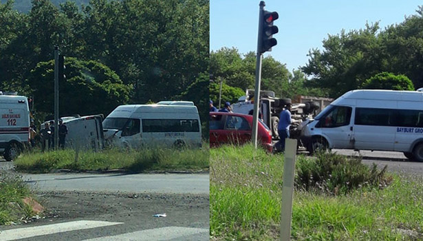 Bakacakkadı mevkiinde bulunan kavşakta meydana gelen kazada sürücüsünün kontrolünden çıkarak devrilen minibüse arkadan gelen başka bir minibüs çarptı. Kaza nedeniyle yol bir süreliğine trafiğe kapatıldı. Sağlık ekipleri ve polis olay yerinde.