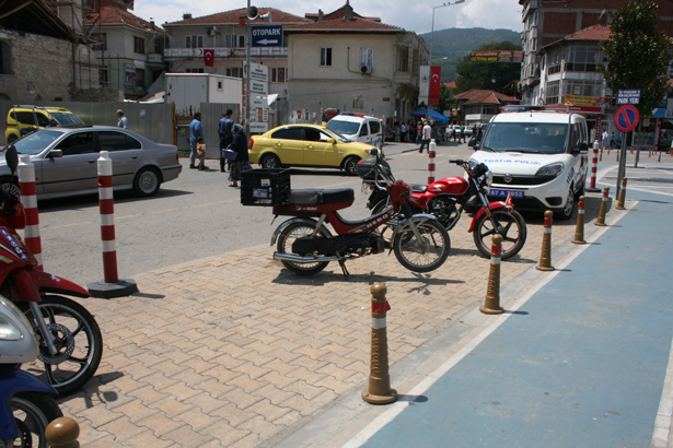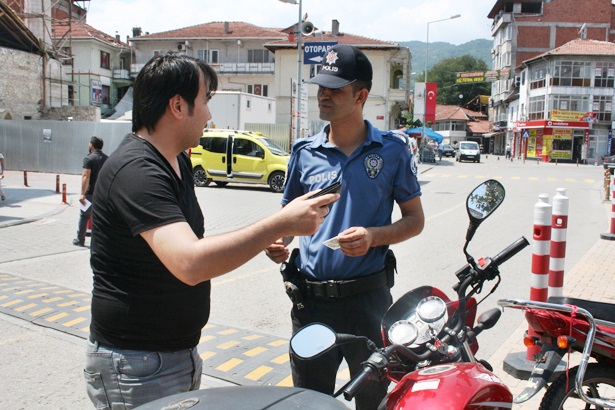 Devrek Cumhuriyet Alanı’nda yapılan denetimlerde; evrak eksiği olan, kask takmayan, trafiği tehlikeye sokan motosiklet sürücüsüne cezai işlem uygulandı. Yapılan denetimde 3 motosiklet trafikten men edilirken, evrak eksiği olan, kurallara uymayan ve kask takmayan çok sayıda motosiklet sürücüsünün hakkında 2918 sayılı Karayolları Trafik Kanunu’na göre ceza kesildi. Trafikten men motosikletler yapılan işlemlerin ardından çekici yardımıyla otoparka götürüldü.