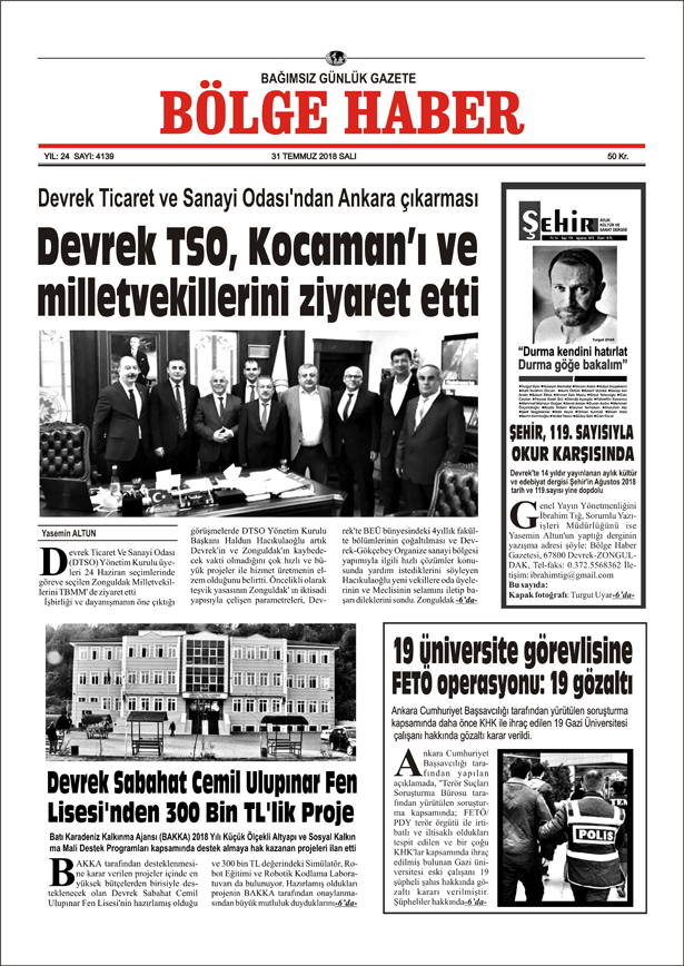 31 TEMMUZ SALI 2018 BÖLGE HABER GAZETESİ... SABAH BAYİLERDE....