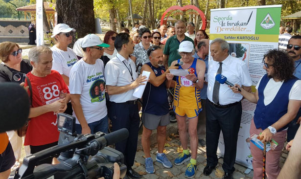 Daha sonra söz alan veteran atlet Safder Kartoğlu, “Bu parkura adımı vererek beni onurlandıran, sizlere Safderce kalabilmeniz için yolların en güzelini açan Devrek Belediyesine, Başkan Sayın Semerci’ye, emeği geçen herkese, özellikle sevgili Emin Tatbul’a, sevgili Ali Uzunali’ye, yaşam koşumun başladığı bu topraklara, ben koştukça buradan dünyaya yayılan köklerime teşekkür ediyorum. Bu topraklarda yalın ayakla top peşinde koşa koşa büyüyen ben Safder Baba’nız buradan; Devrek’ten çıkıp dünyanın 5 ana karasında, 16 ülkede gerçekleşen sayısız maratonda koştum, dereceler aldım. Nasıl oldu bu? Her sabah beşlerde koşa koşa, sizler için, yarınlar için güneşi doğurarak. Bir gün olsun yorulmadan, her gün aşkla! Güneşi her gün doğurursanız siz de her gün yeniden doğarsınız. Onun için yaşımı 91 deseler de yaşım yoktur benim. Ben yaşsızım. Siz de yaşsız olmak istiyorsanız, doğru yerdesiniz. Şu sözümü sakın unutmayın. Ben diyorum ki: ‘Şairler şiirlerini sözcükleriyle yazar. Biz koşucular şiirlerimizi adımlarımızla yazarız.’ Şiir gibi koşun, kendinizi değil ağaçları, kuşları, doğayı dinleyin, hayal kurun, hayal kurmaktan vazgeçmeyin” dedi.