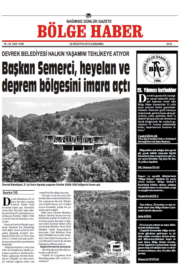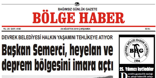 29 AĞUSTOS ÇARŞAMBA 2018 BÖLGE HABER GAZETESİ... SABAH BAYİLERDE....