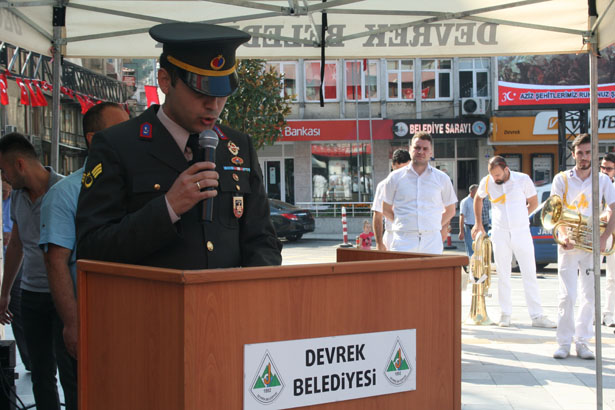 Törene; Devrek Kaymakam Vekili Mehmet Soylu, Garnizon Komutanı Personel Asteğmen İlyas Uğur Akdeniz, Devrek Belediye Başkanı Mustafa Semerci, İlçe Jandarma Bölük Komutan V. Jandarma Kıdemli Başçavuş Bünyen Ahmet Özcan, daire müdürleri, siyasi parti temsilcileri, sivil toplum kuruluş temsilcileri, muharip gaziler, askerler ve vatandaşlar katıldı.