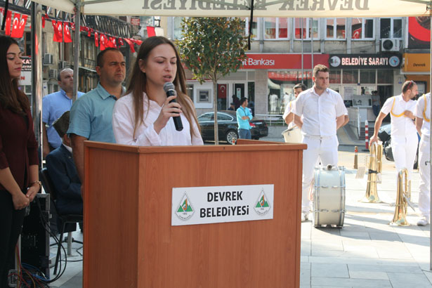 Devrek’te 30 Ağustos Zafer Bayramı’nın 96. Yıl dönümü kutlamaları Cumhuriyet Alanı’nda bulunan Atatürk Anıtına Kaymakamlık ve Belediye Başkanlığı çelenklerinin sunulmasıyla başlandı. Gazi Mustafa Kemal Atatürk ve silah arkadaşları anısına bir dakikalık saygı duruşunda bulunulması ve İstiklal Marşının okunmasının ardından Astsubay Kıdemli Çavuş Murat Çevik ve Devrek Anadolu Lisesi öğrencileri tarafından günün anlam ve önemi hakkında konuşmalar yapıldı ve şiirler okundu.