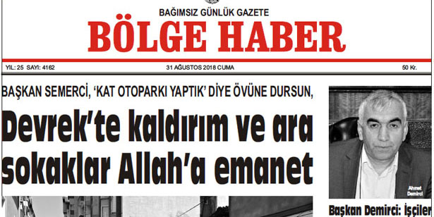 31 AĞUSTOS CUMA 2018 BÖLGE HABER GAZETESİ... SABAH BAYİLERDE....