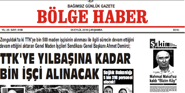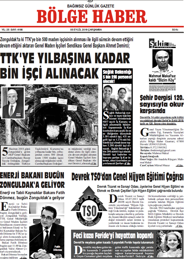 05 EYLÜL ÇARŞAMBA 2018 BÖLGE HABER GAZETESİ... SABAH BAYİLERDE....