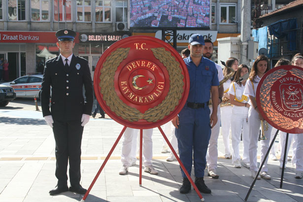 19 Eylül Gaziler Günü anma programı Devrek Kaymakamlığı önünde Kaymakamlık adına çelengini Zonguldak Vali Yardımcısı Nevzat Taştan, Devrek Belediye Başkanlığı adına Belediye Başkanı Mustafa Semerci, Türkiye Muharip Gaziler Derneği adına Devrek Şube Başkanı Muharrem Sarın’ın çelenk sunumu ile başladı.