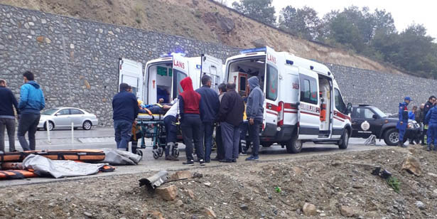 Edinilen bilgiye göre Bartın’dan İstanbul’a gitmekte olan Mustafa Şahin idaresindeki 22 BK 536 plakalı araç havanında yağışlı olması nedeni ile kontrolden çıkarak Esürük rampası kenarında bulunan uçurumdan aşağı uçtu. Yoldan 100 metre aşağı uçan araç ağaçlara takılarak durdu. Ağaçlara takılan araçta bulunan şoför Mustafa Şahin ve Halis Doğan yaralandı.