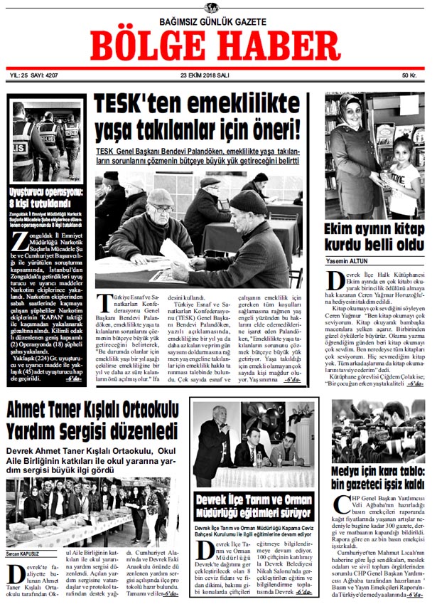 23 EKİM SALI 2018 BÖLGE HABER GAZETESİ... SABAH BAYİLERDE....