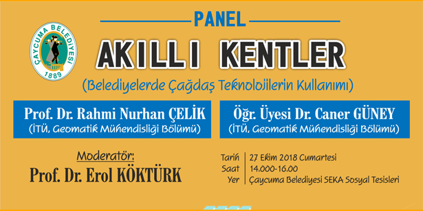 Çaycuma’da, “Akıllı Kentler ve belediyelerde çağdaş teknolojilerin kullanımı” adlı bir panel yapılacak. 27 Ekim Cumartesi günü, SEKA Sosyal Tesislerinde yapılacak olan panelde, İTÜ’den Prof. Dr. Rahmi Nuran Çelik ve Dr. Öğretim Üyesi Caner Güney konuşacak