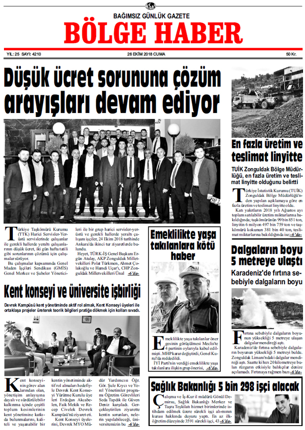 26 EKİM CUMA 2018 BÖLGE HABER GAZETESİ... SABAH BAYİLERDE....