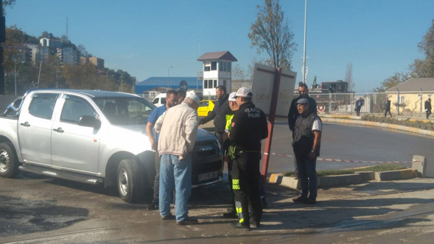 Uğur Mumcu Kavşağı'nda aynı güzergaha giden iki araç çarpıştı. 61 FR 387 plakalı araç, 67 AAL 966 plakalı araca yanından geçerken çarptı. 67 AAL 966 plakalı aracın tamponu büyük hasar gördü. Araç sahibi büyütülecek bir şey olmadığını kendi aralarında halledebileceklerini söyledi. Ancak 61 FR 387 aracın sahibi ise hatasını kabul etmedi, polisi çağırdı. Yaşlı araç sürücüsü ikna edilemeyince trafik şube ekipleri tutanak tuttu.