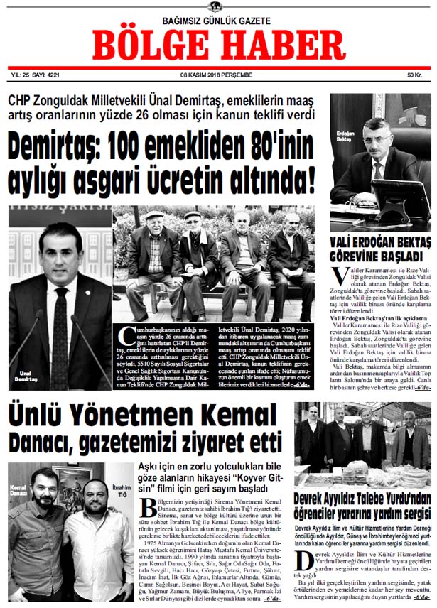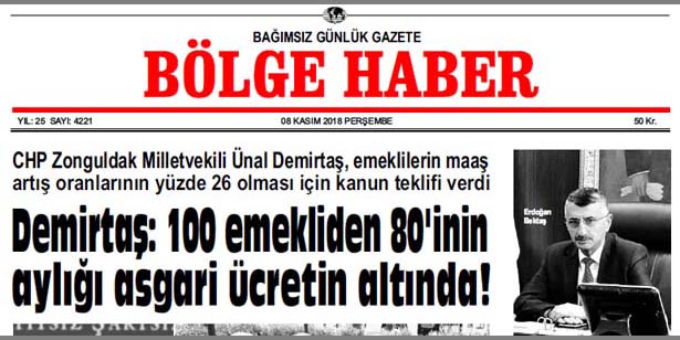 08/11/2018 TARİHLİ BÖLGE HABER GAZETESİ... SABAH BAYİLERDE...